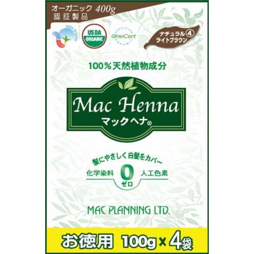 マック ヘナ ハーバルヘアトリートメント ナチュラルライトブラウン(100g*4袋入)[白髪染めトリートメント]