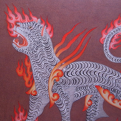 大きさ:27.4センチ×24センチ白色の虎の形をした瑞獣。道を象徴し、白虎は月の女神の化身で子宝と安産を導く。また道は人通り、家を訪ねる人を意味し商売繁盛を助けてくれるといわれます。 印刷ですので色調やスタイルが多少変わることがあります。また画像の色もモニタ環境によって多少異なることがあります。