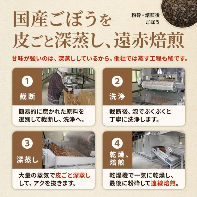 無漂白ティーパックに2.5gの深蒸し&遠赤自家焙煎ごぼう!濃さと香ばしさが違います。