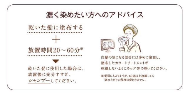 ※髪質にもよりますが、60分以上放置しても染め上がりの程度は変わりません。