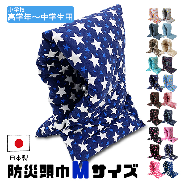 日本製 防災頭巾 防災ずきん 綿100% M 小学校 高学年 〜 中学生 高校生 大人 向け 防災用品 かわいい 柄多数 男の子 女の子 子供用 大人用