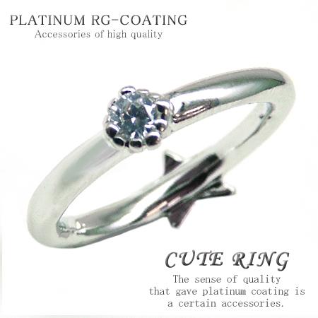 リバーシブル 裏と表で使える自由自在ピンキーリング 高級プラチナRG加工 CZダイヤ 星スター シルバーcr【 kor265 13号 】