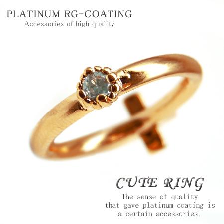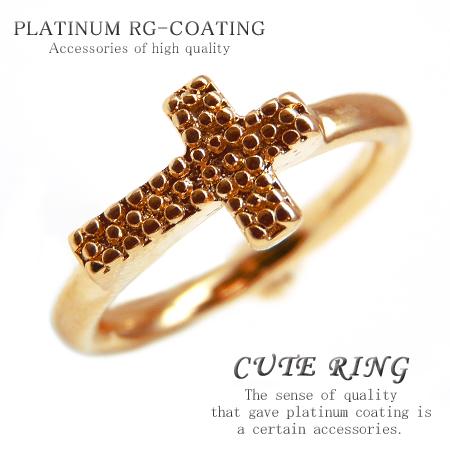 リバーシブル 裏と表で使える自由自在ピンキーリング 高級プラチナRG加工 CZダイヤ クロス十字架 ピンクゴールドcr【 kor276 7号 】