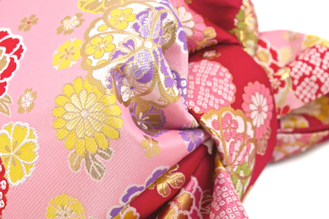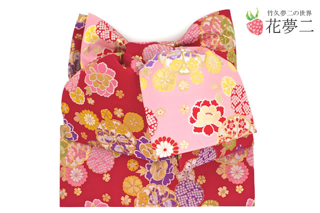 作り帯 七五三 子供用 ブランド 花夢二 赤 ピンク 菊 桜 牡丹 古典 結び帯 竹久夢二 【7歳】