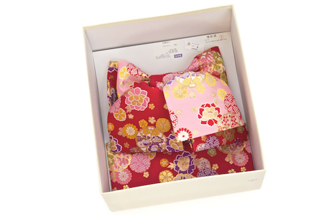 リボン結びは型崩れしにくいようにしっかりとした素材で出来ており、可愛らしいデザインの結び帯ですので着物姿のポイントになります。 こちらの作り帯でしたら、素晴らしい晴れの日をお迎えいただける事でしょう。