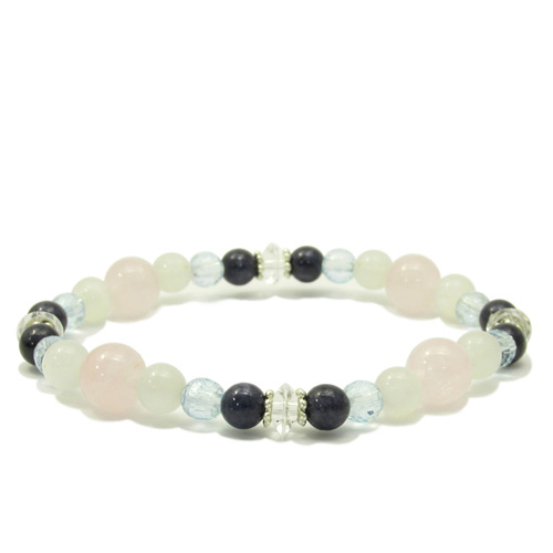サファイアやカットストーンを織り交ぜて、可愛らしくもオシャレに仕上げたパステルカラーのブレスレットです。