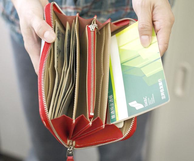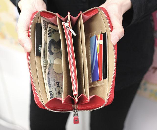 裏は、派手すぎず大人っぽい赤い本革なので、使うほどに味が出ます。