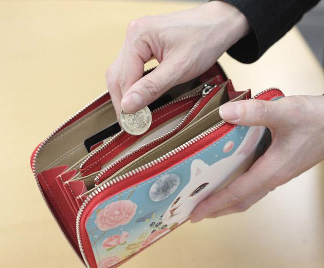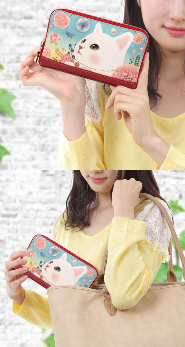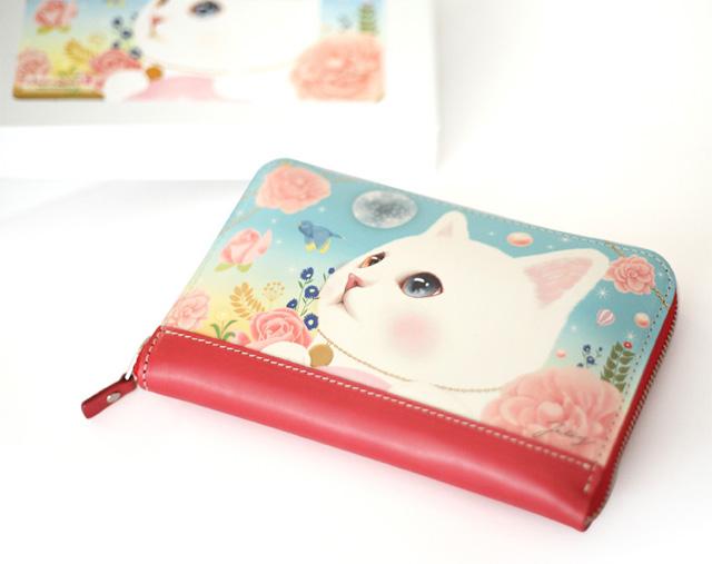 白猫choo chooのイラストが 大きくプリントされたお財布