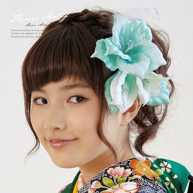 成人式 髪飾り 成人式の髪飾り 2点セット 振袖 卒業式 袴 浴衣 はかま 花 フラワー 緑 レース 羽 ふりそで ゆかた 髪留め 髪かざり ヘアアクセサリー 和装