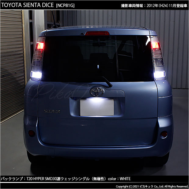 ピカキュウ,LED専門店,LEDバルブ,DC12V車,ハイブリッド車対応LEDバルブ,T20シングル,W21W,バックランプ,後退灯,ホワイト,HYPER SMD30連ウェッジシングル球,トヨタ,初代シエンタ,シエンタ,TOYOTA,SIENTA,NCP81G,NCP85G,NCP80系,