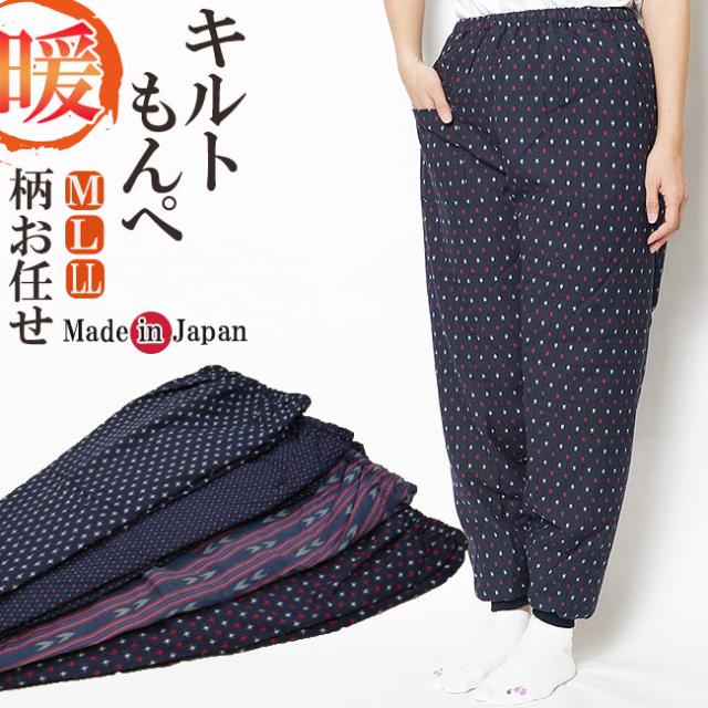 もんぺ 日本製 久留米織り 綿入りキルト 絣柄 M/L/LL