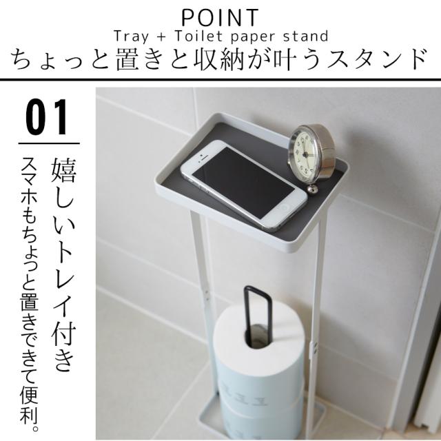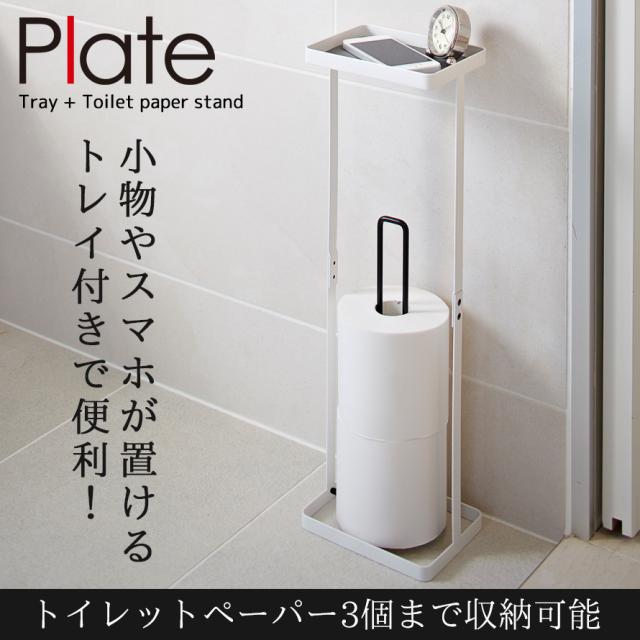 トイレットペーパー ストッカー スタンド コーナー トイレラック スリム スマホ置き 携帯 置ける トレイ付き トイレ 収納 トイレ収納 トイレタリー トイレグッズ ホワイト 白 山崎実業 おしゃれ シンプル インテリア プレート plate PLATE トレイ付 トイレットペーパー...