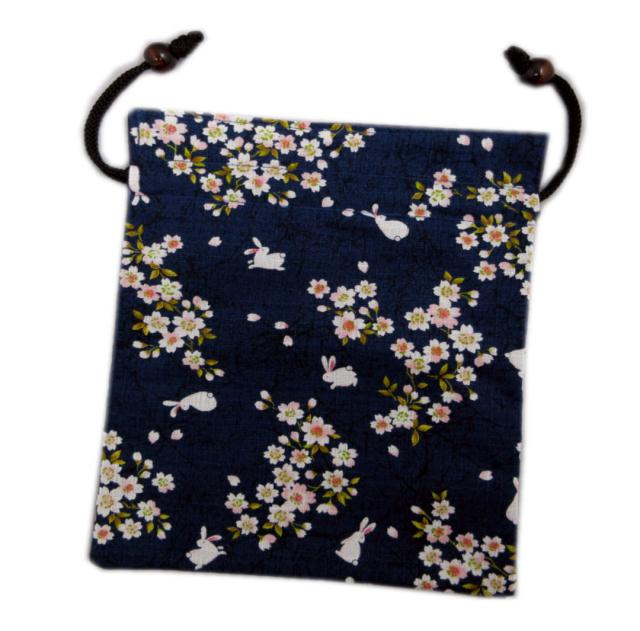 平巾着 巾着袋 小物入れ 和柄 木玉付 桜うさぎ紺 日本製 女性用 レディース 子供用 キッズ