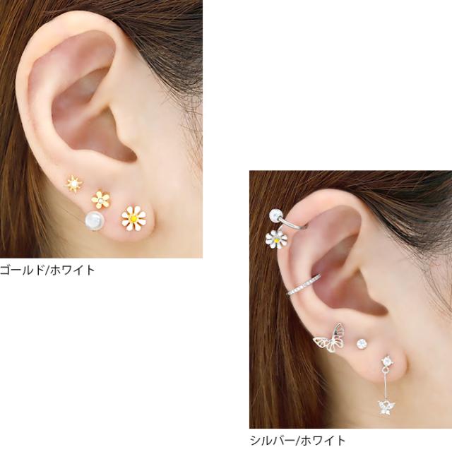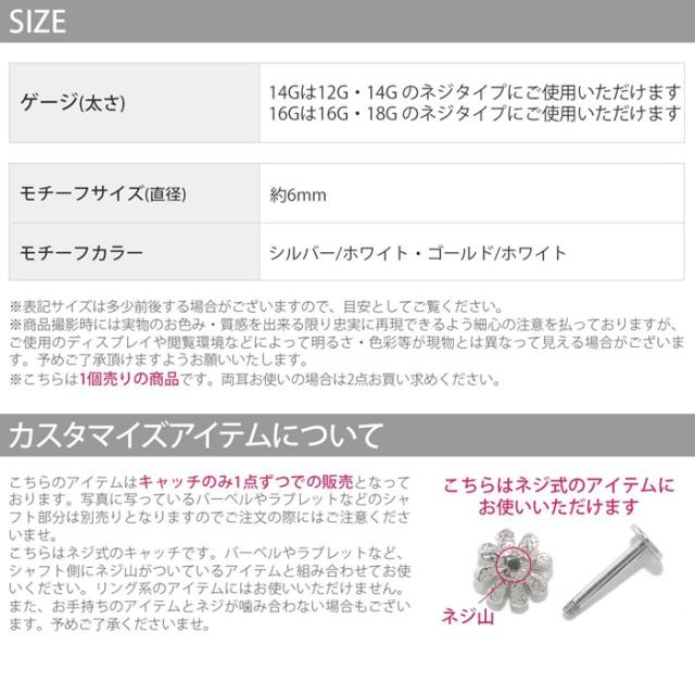 キャッチ ボディピアス 12G 14G 16G 18G 花 フラワー カスタマイズ カスタム 軟骨 ピアス ボール ピアスパーツ レディース コスモス