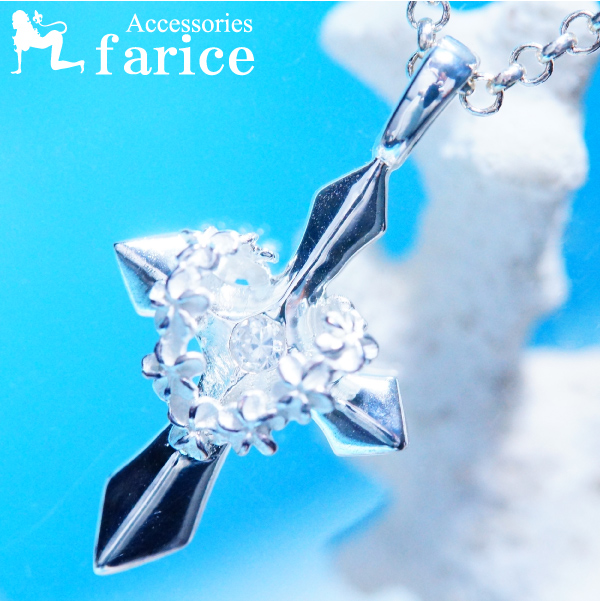 ハートレイ ストーンクロス(十字架)&ハート型プルメリアレイ(花輪)デザイン 花冠 ハワイアンジュエリー ペンダント ネックレス