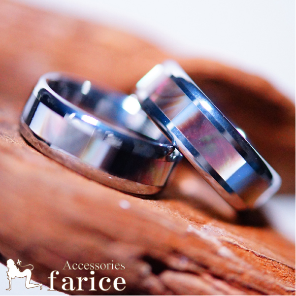 アワビ貝センターライン埋め込みデザイン タングステン製ソフトエッジタイプ ハワイアンジュエリーリング