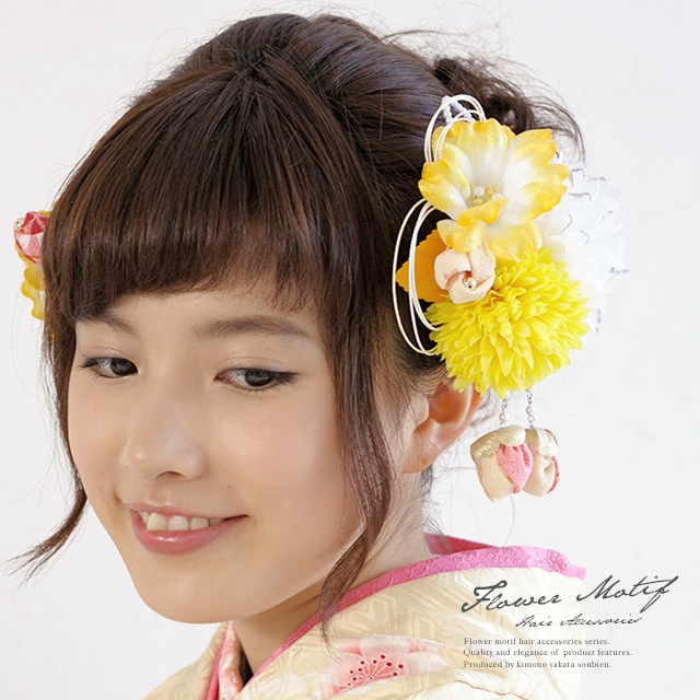 成人式 髪飾り 成人式の髪飾り 2点セット 卒業式 振袖 浴衣 はかま 花 フラワー 黄色 ラメ パールビーズ 和柄 ブラ飾り ふりそで ゆかた 髪留め 髪かざり ヘアアクセサリー 和装