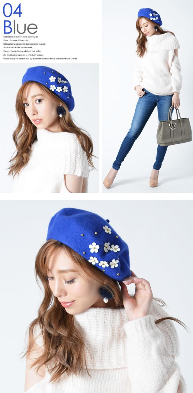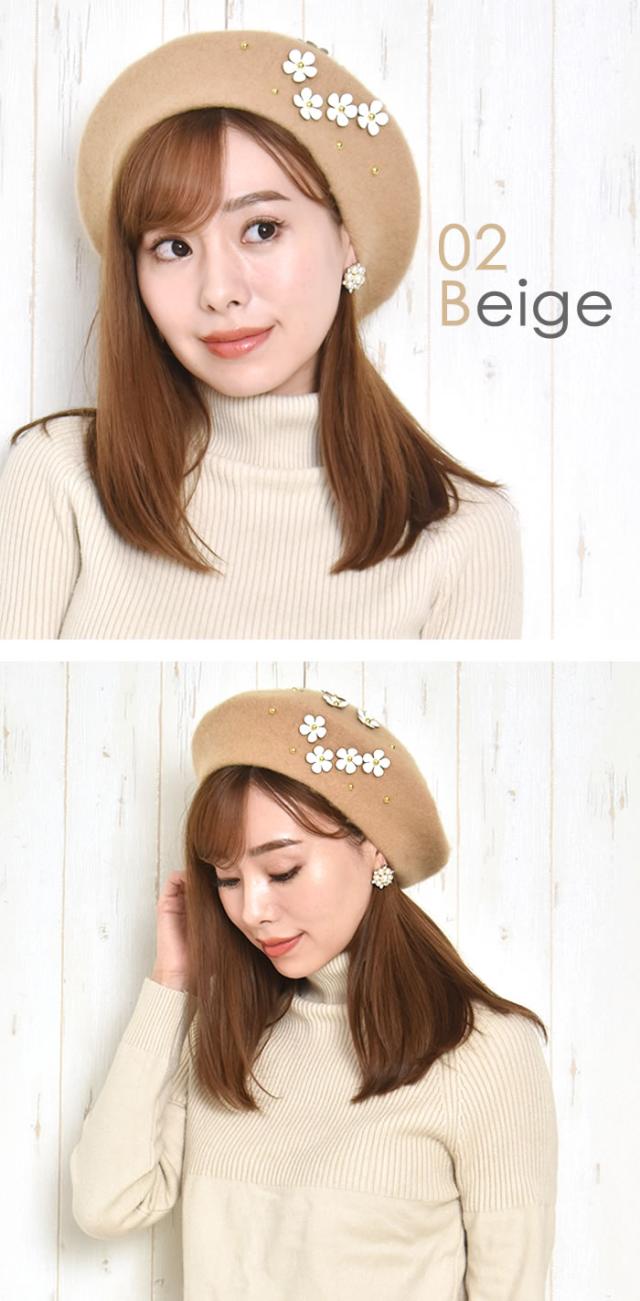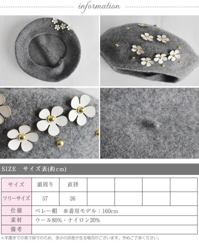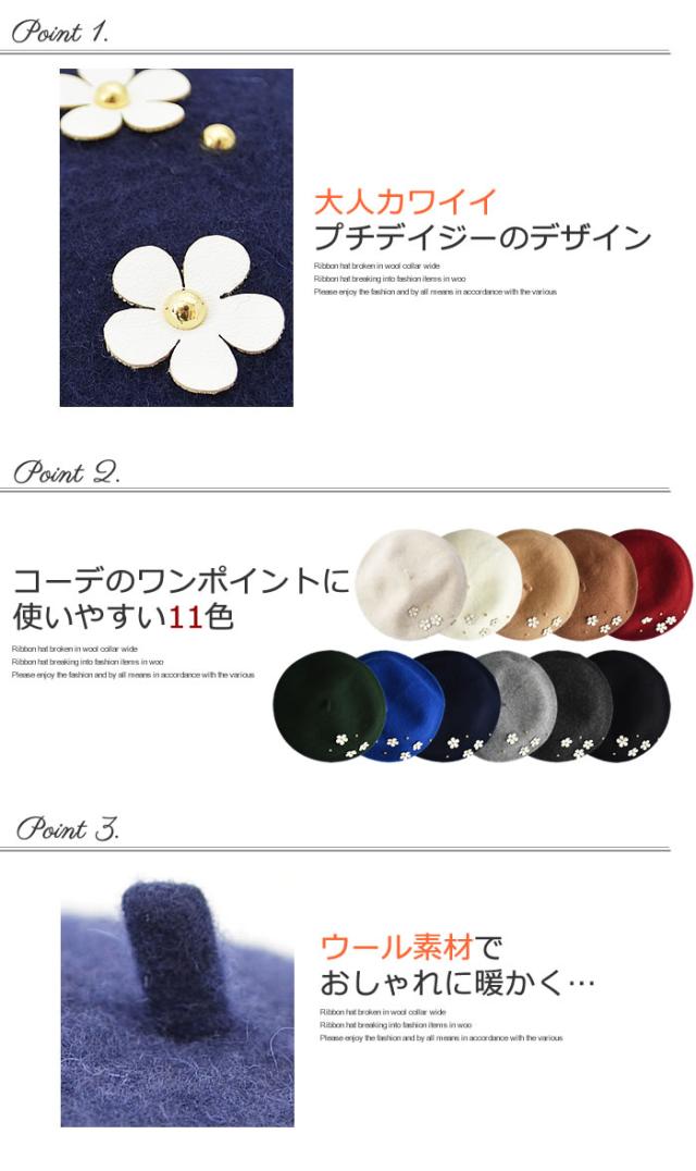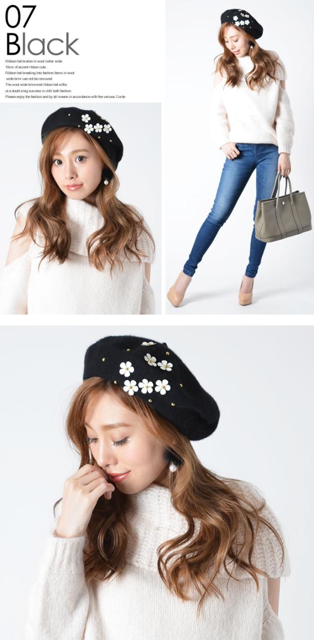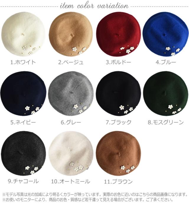 ベレー帽 ゆうメール便送料無料 ベレー帽 レディース ベレー 帽 帽子 デイジー フラワー ウール DAISYフラワー付きウールベレー帽