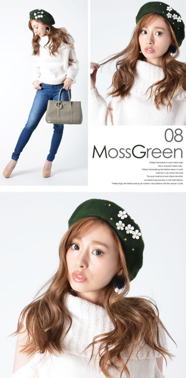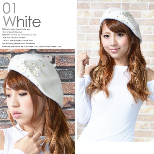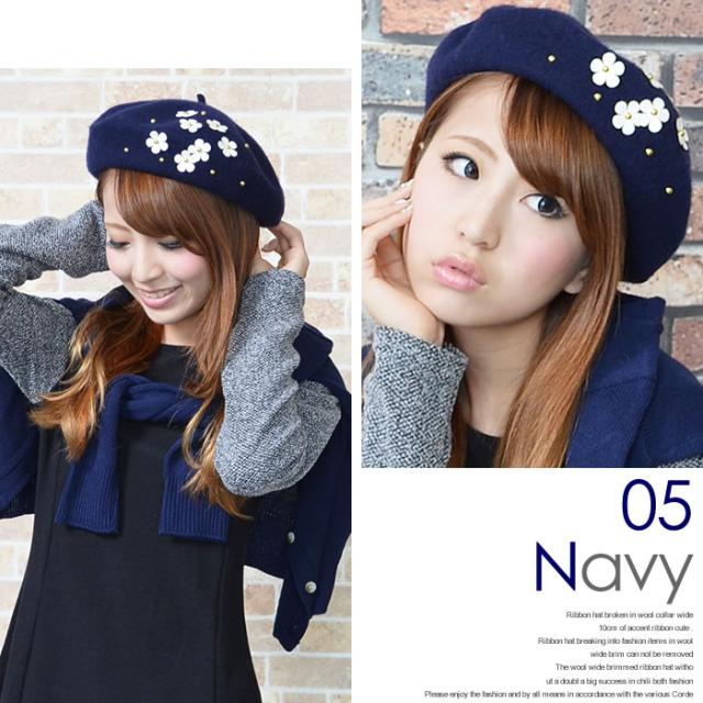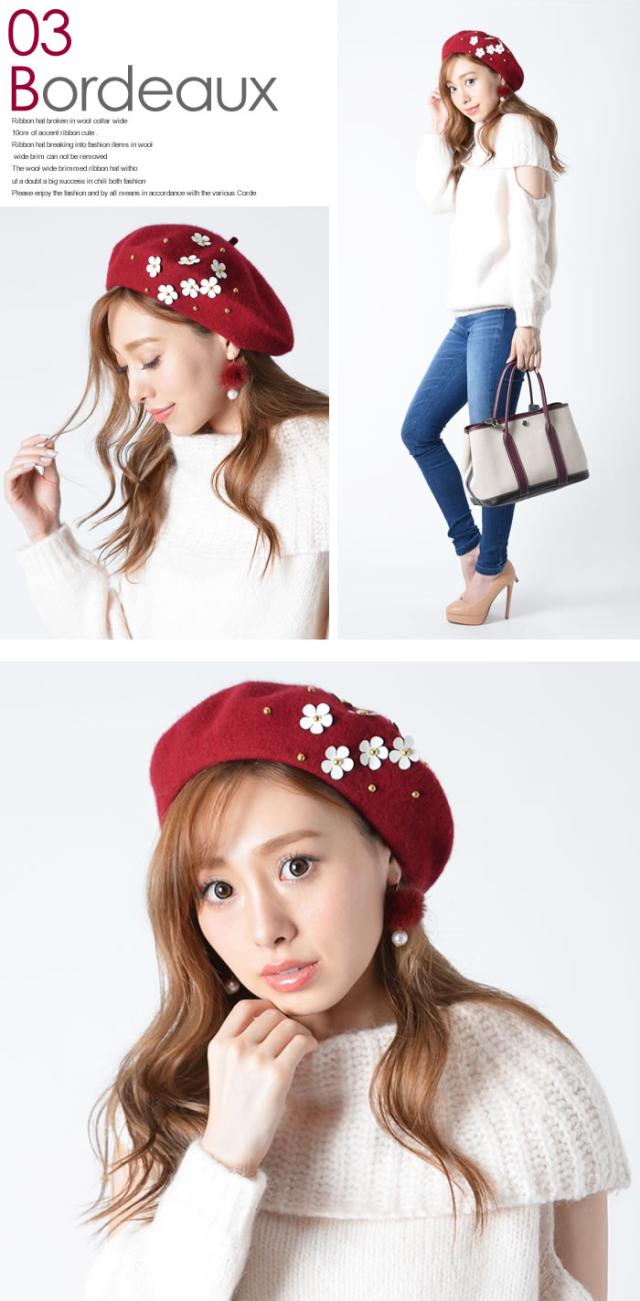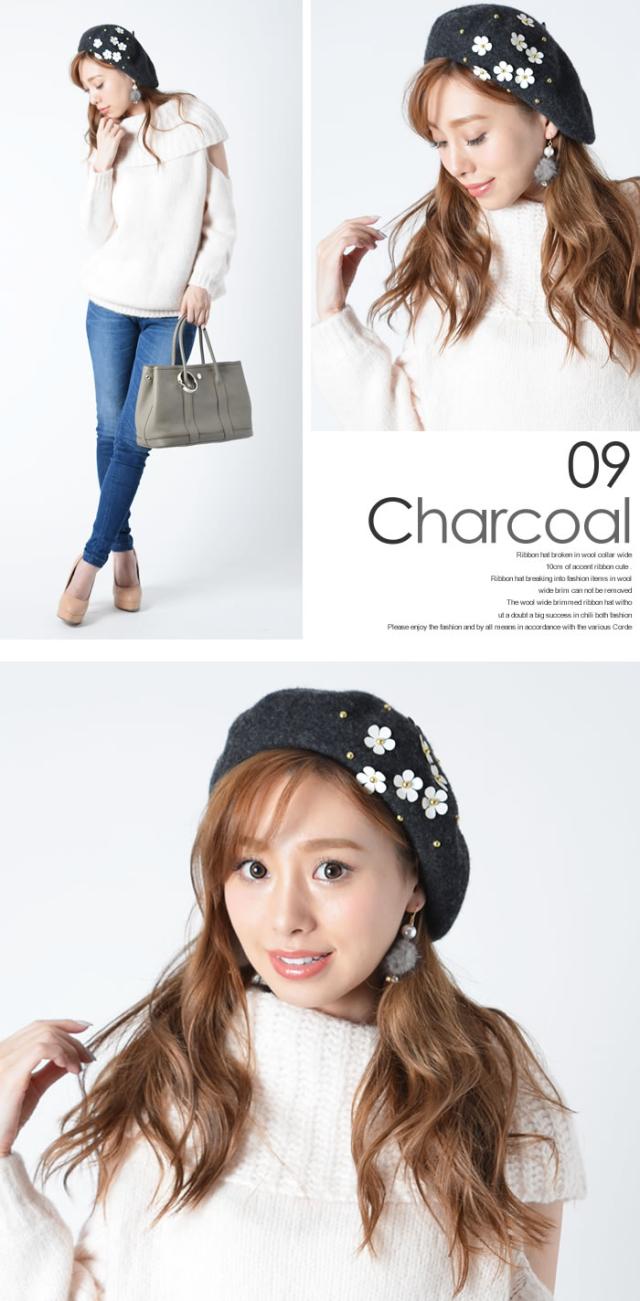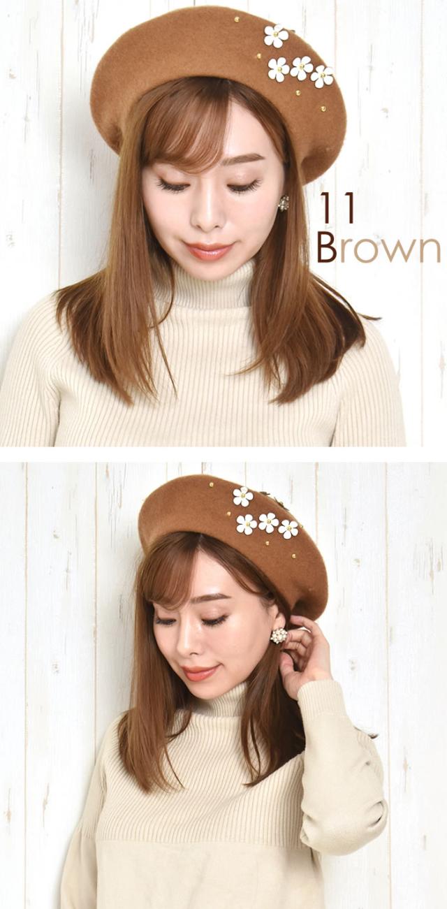 ベレー帽 ゆうメール便送料無料 ベレー帽 レディース ベレー 帽 帽子 デイジー フラワー ウール DAISYフラワー付きウールベレー帽