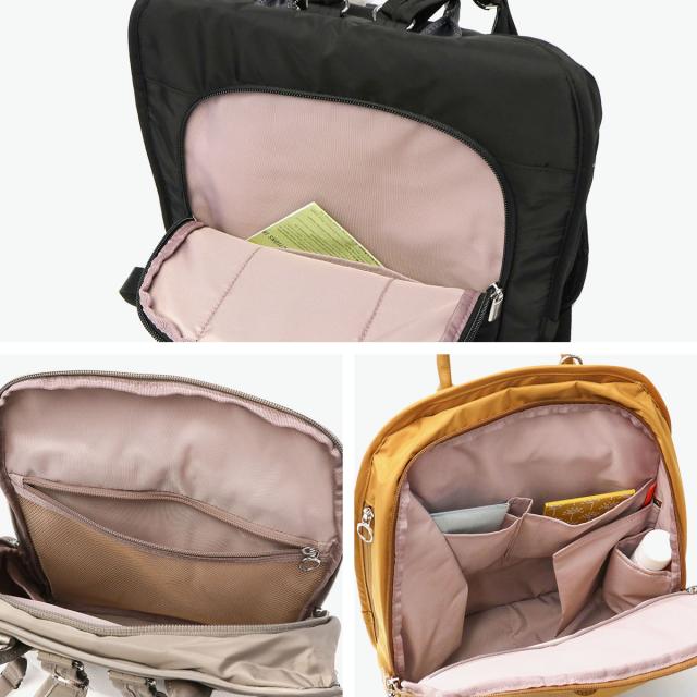 街歩きを楽しむ大人の女性のため、使用時の快適さと美しさにこだわったシリーズ『PJ1-4th』。こちらは12L容量のリュックです。貴重品やポーチなど持ち歩きたいアイテムがしっかりまとめられるサイズ感で、お出掛けをより快適にサポートしてくれます。