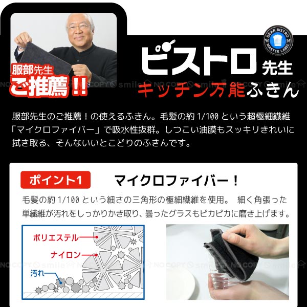 服部先生のご推薦!の使えるふきん。毛髪の約1/100という超極細繊維「マイクロファイバー」で吸水性抜群。