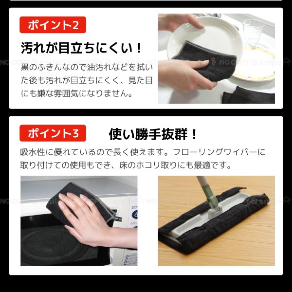 黒のふきんなので、油汚れをなどを拭いた後も汚れが目立ちにくく見た目もイヤな雰囲気になりません。
