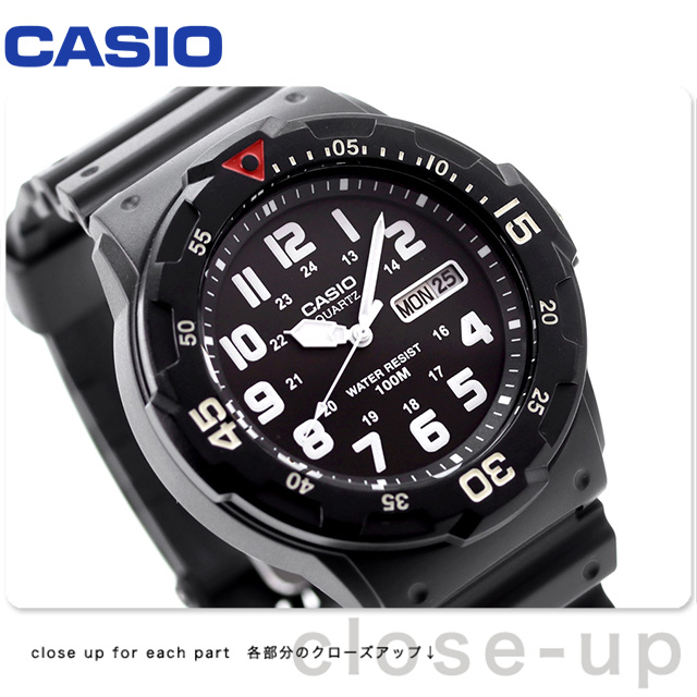 7年保証キャンペーン カシオ 腕時計 デイデイト クラシック 海外モデル オールブラック CASIO MRW-200H-1BVDF ブラックのフォルムにアクセントカラーが映えるモデル。3時位置には日付・曜日表示を配置。大き目にデザインされたインデックスが視認性を向上させます。スポーティーなデザインはカジュアルな服装にピッタリ。ちょっとしたお出かけにも気軽にお使い頂けるモデルです。 日本未発売モデル