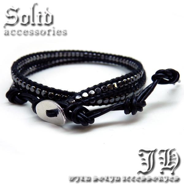 本革2連 ワンランク上のラップブレス 黒レザー プラチナブラック セレブや芸能人御用達ブレスレット【 chb37 】
