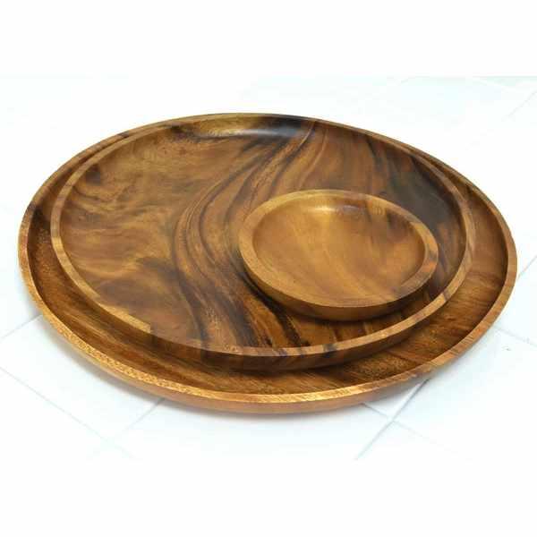 アカシア プレート 25cm 丸皿 木製 ( 木製プレート お皿 皿 盛り皿 木製食器 ラウンド 丸 メイン料理 大皿料理 キッチン用品 インテリア お盆 トレー 北欧風 おしゃれ )