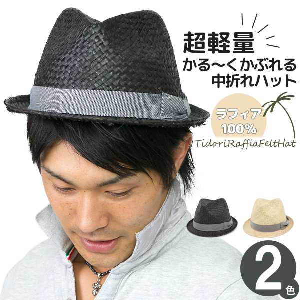 帽子 ラフィア メンズ ストローハット サイズ調節 夏 麦わら HAT / TIDORIラフィア中折れハット