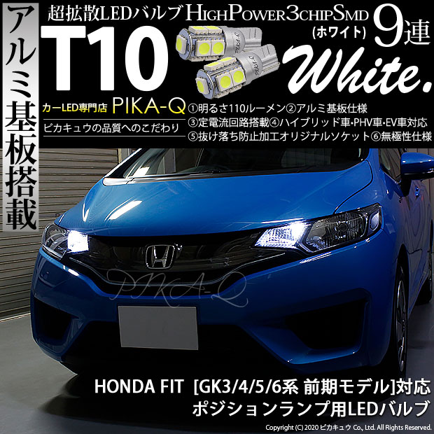 ホンダ フィット (GK3/4/5/6 後期) 対応 LED ポジション T10 High Power 3chip SMD9連ウェッジシングル ホワイト 2個 3-A-5