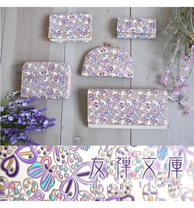 財布 レディース 長財布 本革 日本製 L字ファスナー ジッパー ラウンドファスナー 手描き 蝶柄 友禅文庫【一粒万倍日】