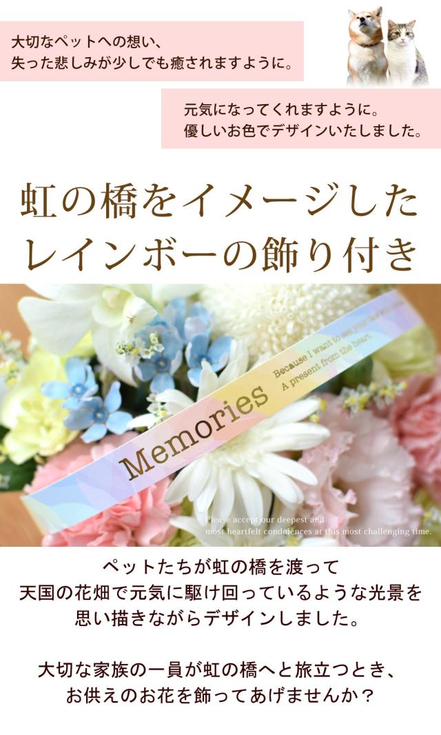 お供え ペット お悔やみ 花 ペットに贈る お供え生花アレンジメント 花束 そのままブーケ 選べる「虹の橋シリーズ」 パステル 御供 虹の橋 ペット供養 仏花 ギフト ブーケ お供え花 お供え物 一周忌 三回忌 命日 ワンちゃん ネコちゃん 喪中見舞い 喪中 お見舞い 年末