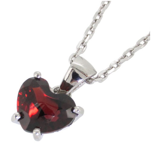 アフリカ産 ハート型カット ガーネット シルバーネックレス/天然石/パワーストーン/レディース/1月誕生石/ペンダント/首飾り