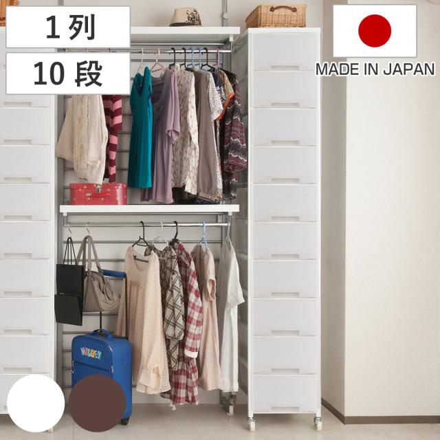 衣装ケース 大量収納プラスチックチェスト 10段 ( 幅36×奥行48×高さ200cm 収納ボックス 引き出し ハイタイプ 収納ケース チェスト タンス 衣類収納 大容量 キャスター付き リビング収納 クローゼット ランドリー 日本製 スリム )