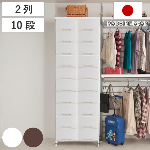 衣装ケース 大量収納プラスチックチェスト 2列10段 ( 幅69×奥行48×高さ200cm 収納ボックス 引き出し ハイタイプ 収納ケース チェスト 衣類収納 大容量 タンス キャスター付 リビング収納 クローゼット ランドリー 日本製 スリム )