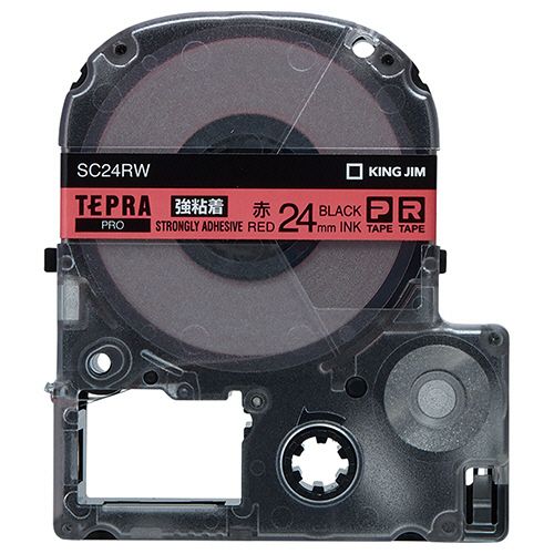 テプラ PRO テープカートリッジ 強粘着 24mm 赤/黒文字 1個