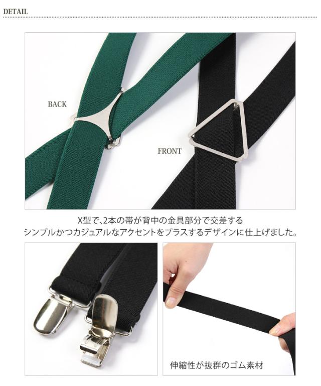 サスペンダー 2.5cm幅 太め レディース メンズ スカート パンツ アクセサリー サスペンダー ベルト ユニセックス 男女兼用 無地 ゴム クリップ ベルト カジュアル シンプル スリム X型 吊りバンド キッズ 子供 子ども