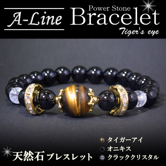 パワーストーン ブレスレット 金運&仕事運UP タイガーアイ12mm&オニキス8mm PW-2301