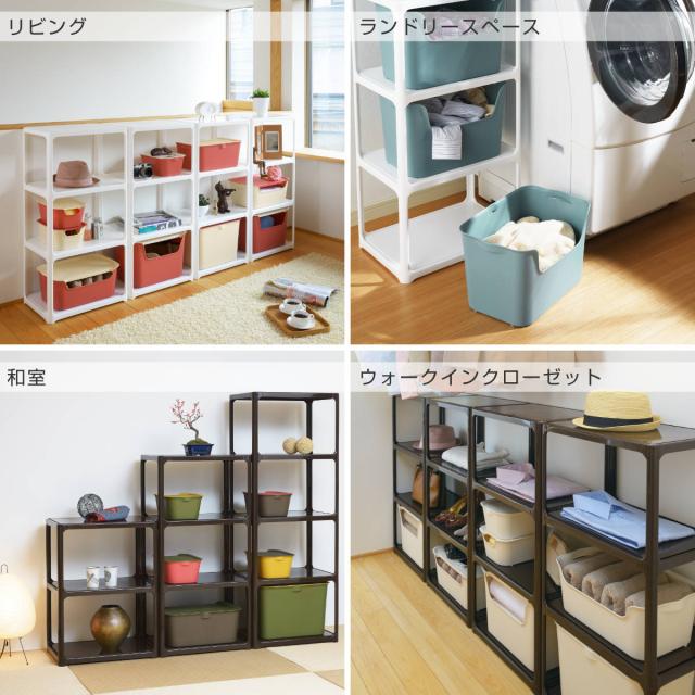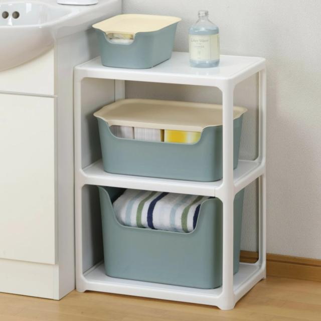 同じサイズ同士はもちろん、サイズ違いの「Mサイズ」や「Lサイズ」に、フタ(別売)を使用すると積み重ねることができ、お部屋のスペースを効率よく活用できます。