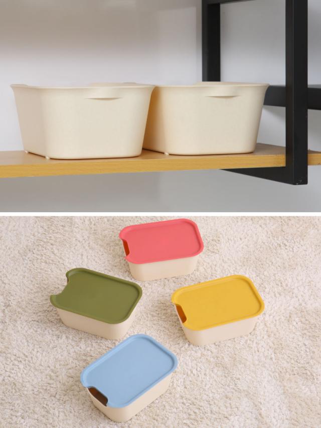 別売りのフタを使うと、大切なものをしっかり収納することができます。中身が見えないので、急な来客時や見た目をスッキリさせたい時にも便利です。フタもカラー展開が豊富なので、それぞれ組み合わせて自分好みのコーディネートが楽しめます。