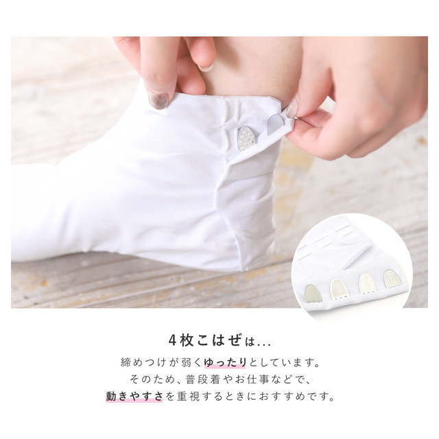 定番4枚こはぜの白足袋。お着物スタイルによって必需品の白足袋は、老舗の福助謹製。の安心品質です。