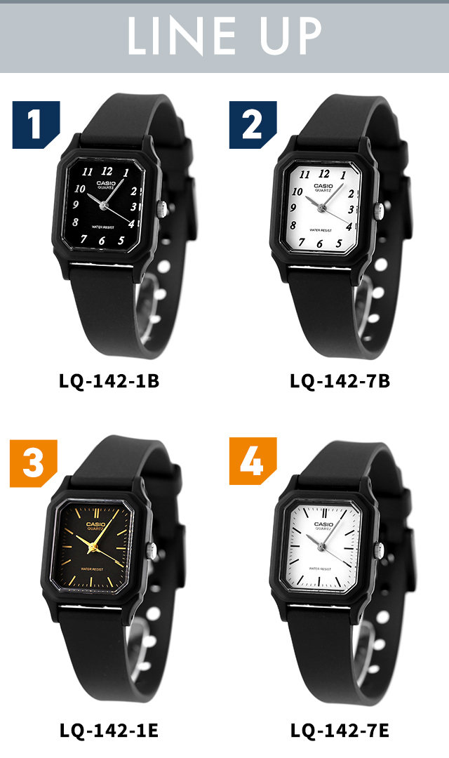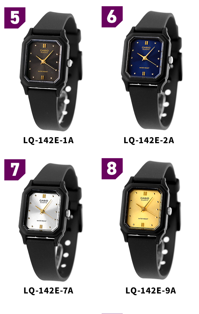 7年保証キャンペーン カシオ 海外モデル CASIO スクエア スタンダード スクエア型のフォルムにクラシカルな文字盤デザインが特徴のモデル。カジュアルはもちろん、少しフォーマルな服装にも合わせてお使いただける、オンオフ問わないデザインです。 日本未発売モデル 【1】LQ-142-1B/【2】LQ-142-7B/【3】LQ-142-1E/【4】LQ-142-7E/【5】LQ-142E-1A/【6】LQ-142E-2A/【7】LQ-142E-7A/【8】LQ-142E-9A
