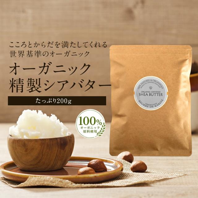 シアバター 200g オーガニック 精製 ボディケア ヘアワックス 手荒れ スキンケア ヘアケア マッサージ ネイルケア 保湿