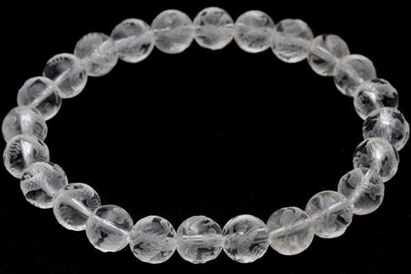 天然石 ビーズ【彫刻ビーズ】水晶 (素彫り) 五爪龍 (8mm) (半連 ブレスレット約1本分) パワーストーン