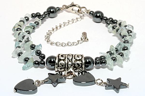 【天然石 ブレスレット】さざれ ヘマタイト&アクアマリン パワーストーン