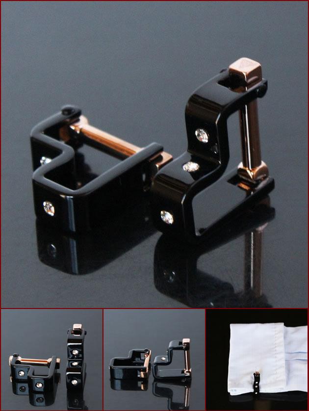 カフスボタン。クリスタルも使用され、形も