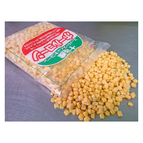 火を通していない生トウモロコシを新鮮冷凍した十勝産トウモロコシの業務用1kg入り商品です。