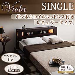 【送料無料】モダンライト・コンセント収納付きベッド【ダークブラウン】【ボンネルマットレス付き】シングル