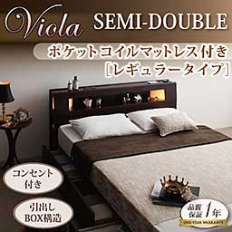 【送料無料】モダンライト・コンセント収納付きベッド【ダークブラウン】【ポケットコイルマットレス付き】セミダブル